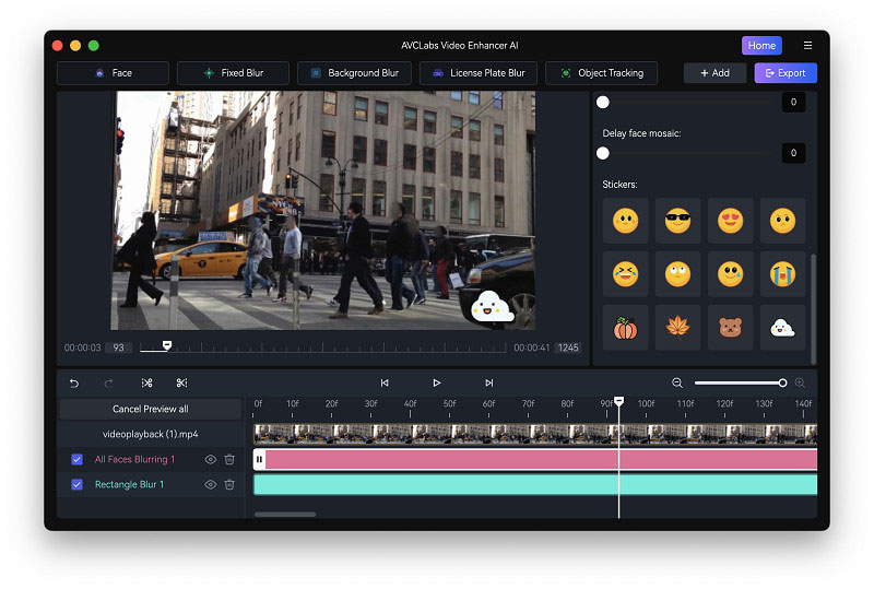 Upon adding a blur task and selecting the desired blur type, the program automatically switches to preview mode, allowing you to instantly see the blur effect. After previewing, you can go back to blur effect setting and adjust it to the optimal outcome.